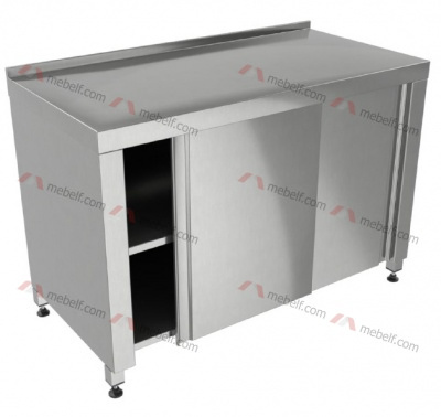 Столешница и двери изготолены из шлифованной нержавеющей стали AISI 430. Каркас - сварной изготовлен из гнутого листового металла толщиной 0,7 мм, нижней и промежуточной полками, полностью из нержавеющей стали AISI 430. Стойки оснащены регулируемыми по высоте пластиковыми опорами. Задняя стенка - оцинкованная сталь.