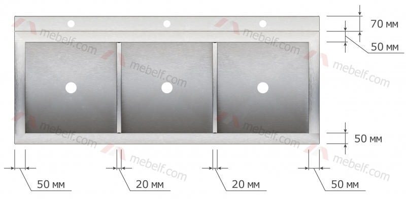 | Ванна моечная трехсекционная "Бизнес" ВМБ 2000/703 без борта |