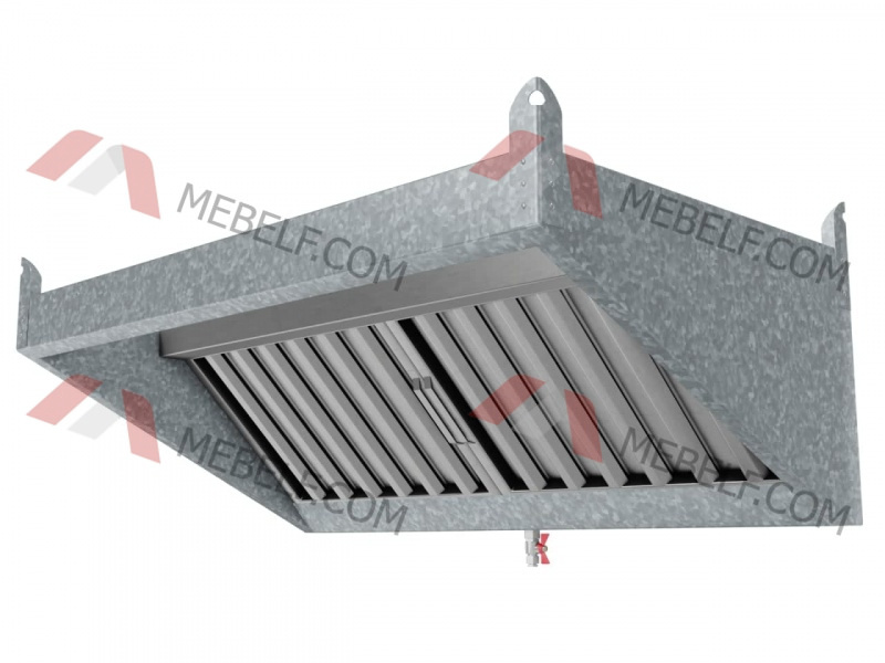 - Зонт приточно-вытяжной оцинкованный пристенный ЗВЦП02 – зонт пристенный приточно-вытяжной выполнен из оцинкованной стали толщиной 0,7 мм, задняя стенка изготовлена из оцинкованной стали 0,7 мм и оснащен встроенными нержавеющими жироуловителями для удаления жира. Имеет 2 врезки для оттока и притока воздуха (размер по согласованию)